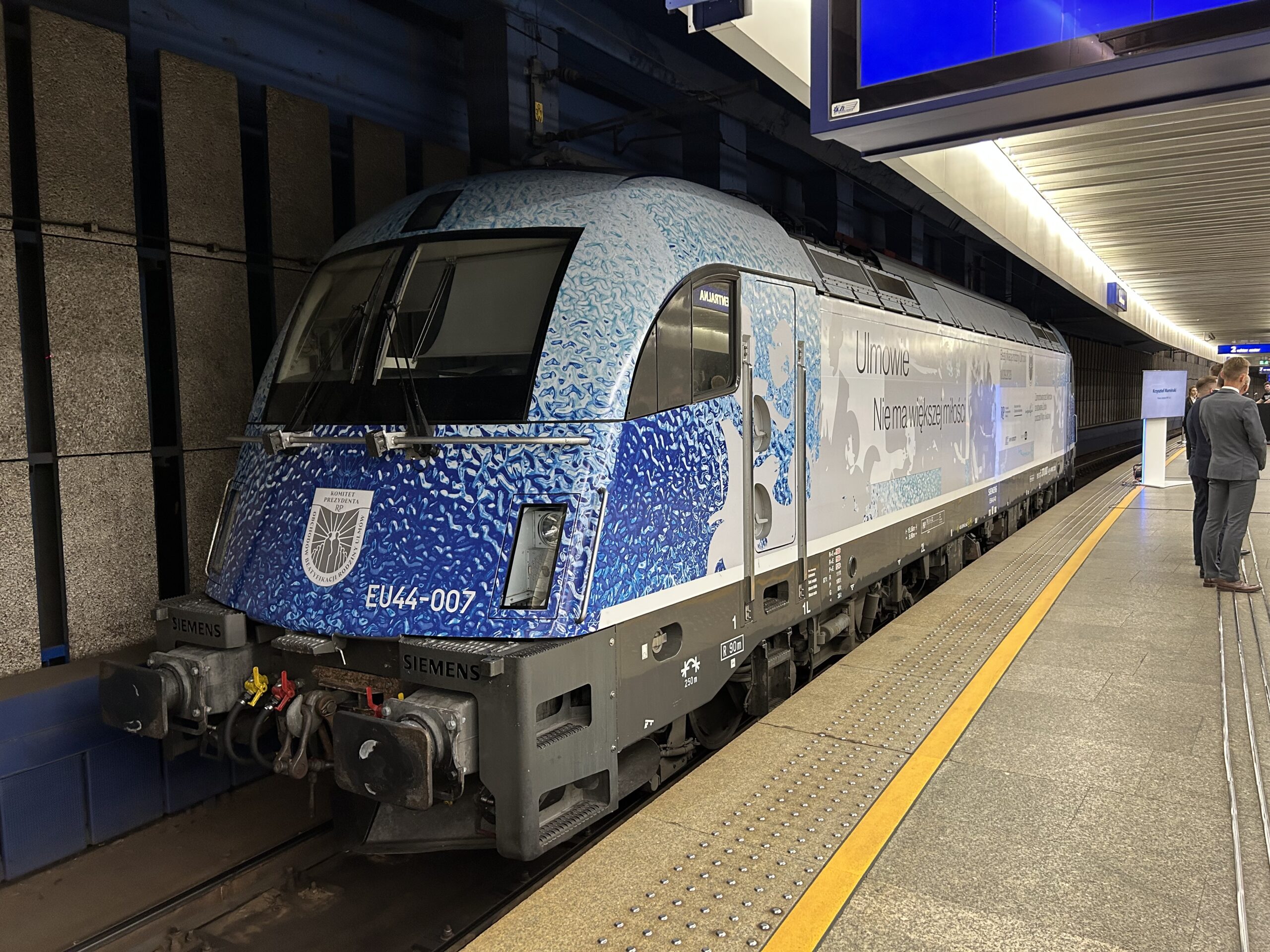 Dokładniej, oklejony został Husarz EU44-007 PKP Intercity, który będzie obsługiwać połączenie IC Wawel relacji Przemyśl – Kraków – Berlin. Napis jest zarówno w wersji polskiej, jak i angielskiej.